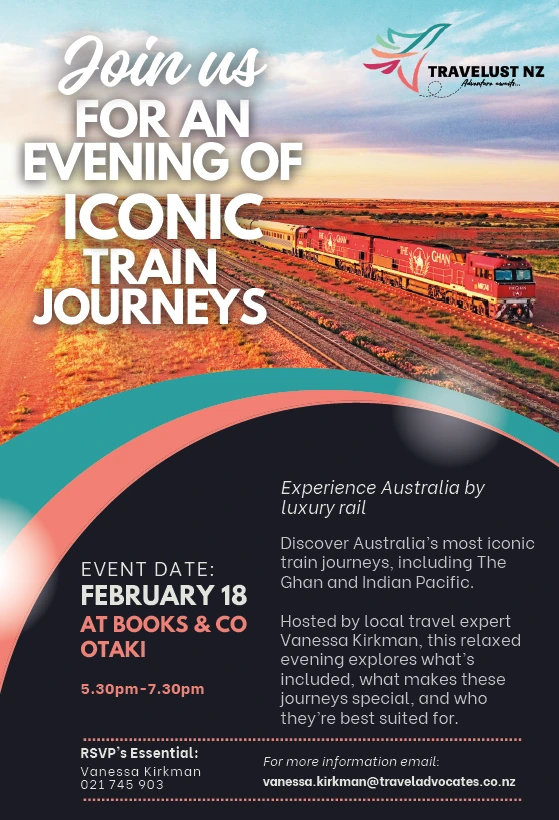 Please RSVP to 021 745 903, or vanessa.kirkman@traveladvocates.co.nz
